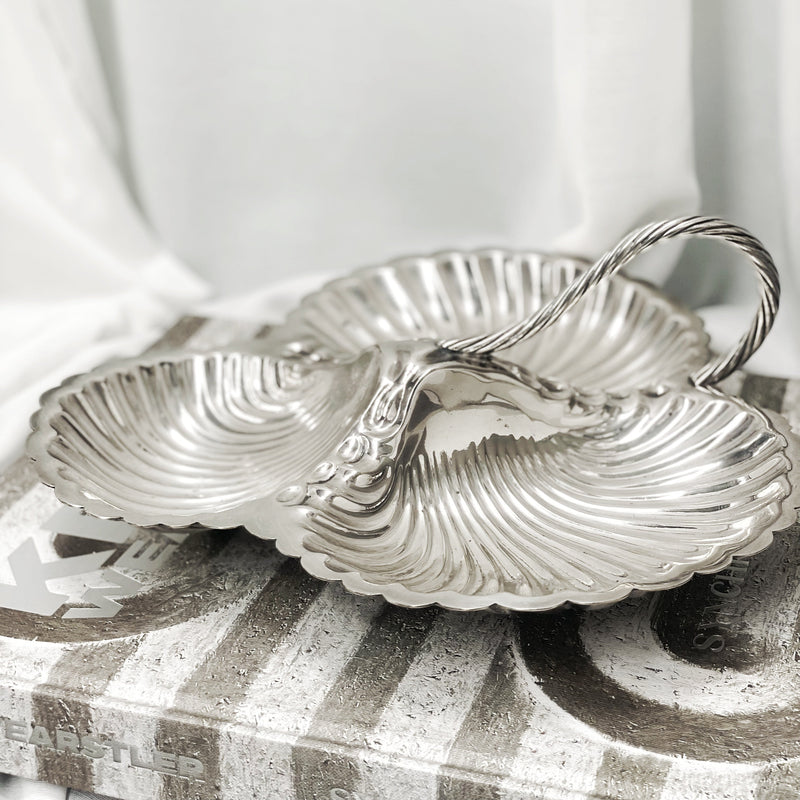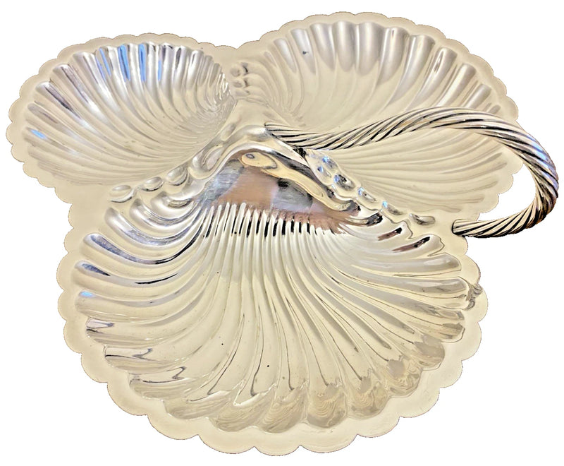 Art Deco style 1930s Benet Fink & Co, beautiful condition, triple shell platter with handle and decorative shell feet.