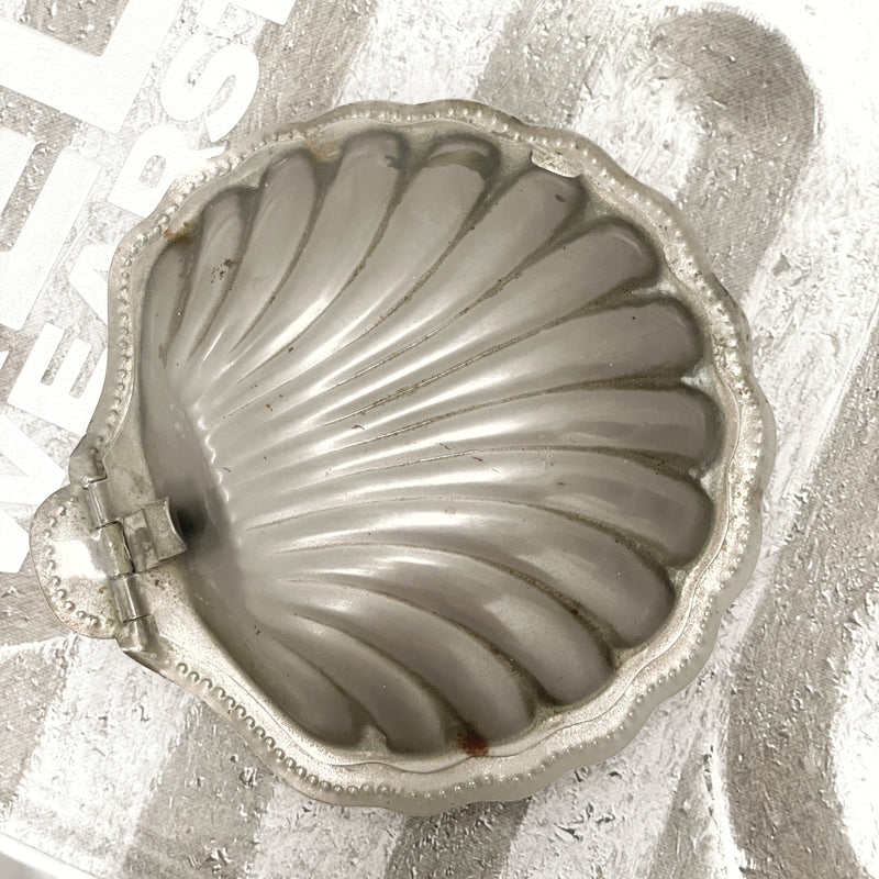 Vintage silver plate clamshell butter dish with glass insert. Elegant shell with removable glass. Slight chip to the back of the glass insert, which does not affect its use.  Serve up your caviar, homemade butter or other condiments in this delightful piece.