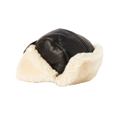 Get ready for winter hiking in Tasmania, skiing in Thredbo or kids winter sports! Our shearling sheepskin trapper hats are modelled after vintage aviation styles and feature dark brown leather outer, a shearling-trimmed visor and ear flaps – these were originally put in place for pilots who flew aircraft with open cockpits and velcro leather strap to secure this piece in place under the chin or overhead.